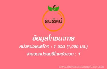 “น้ำส้มคั้นธนรัตน์” ผลิตจากส้มเขียวหวาน คั้นสดใหม่ทุกวัน มีส่วนผสมเนื้อส้ม-เกล็ดส้มแท้ จำหน่ายส่งน้ำส้มคั้นสดบรรจุขวดขนาดต่างๆ ในราคาส่ง ส่งตรงจากโรงงานถึงร้านค้า-ตัวแทนจำหน่ายทุกวัน มีจุดกระจายสินค้าครอบคลุมทั่วกรุงเทพฯ มีเครื่องหมายฮาลาล