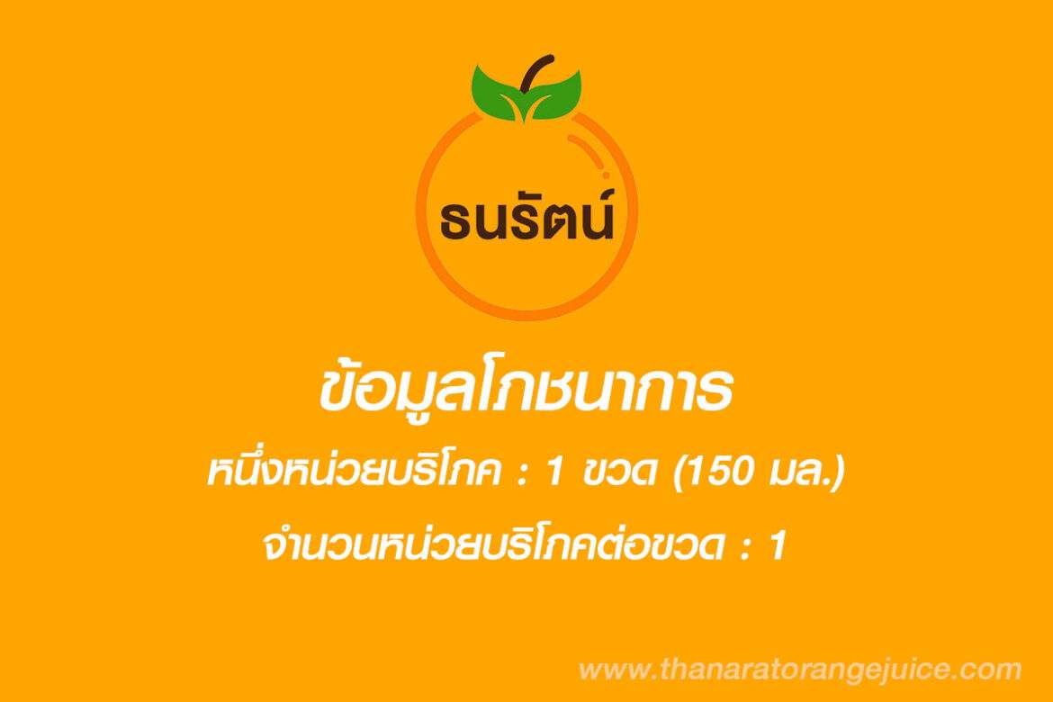 ข้อมูลโภชนาการ หนึ่งหน่วยบริโภค : 1 ขวด (150 มล.) จำนวน